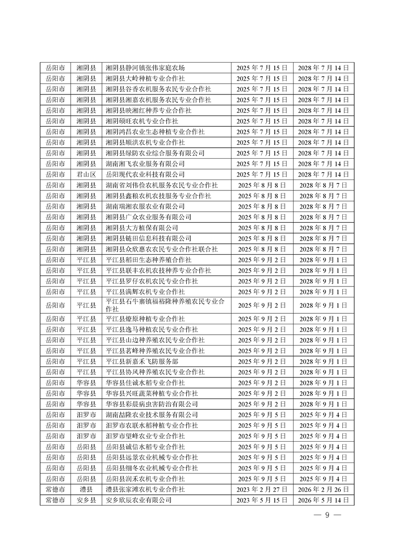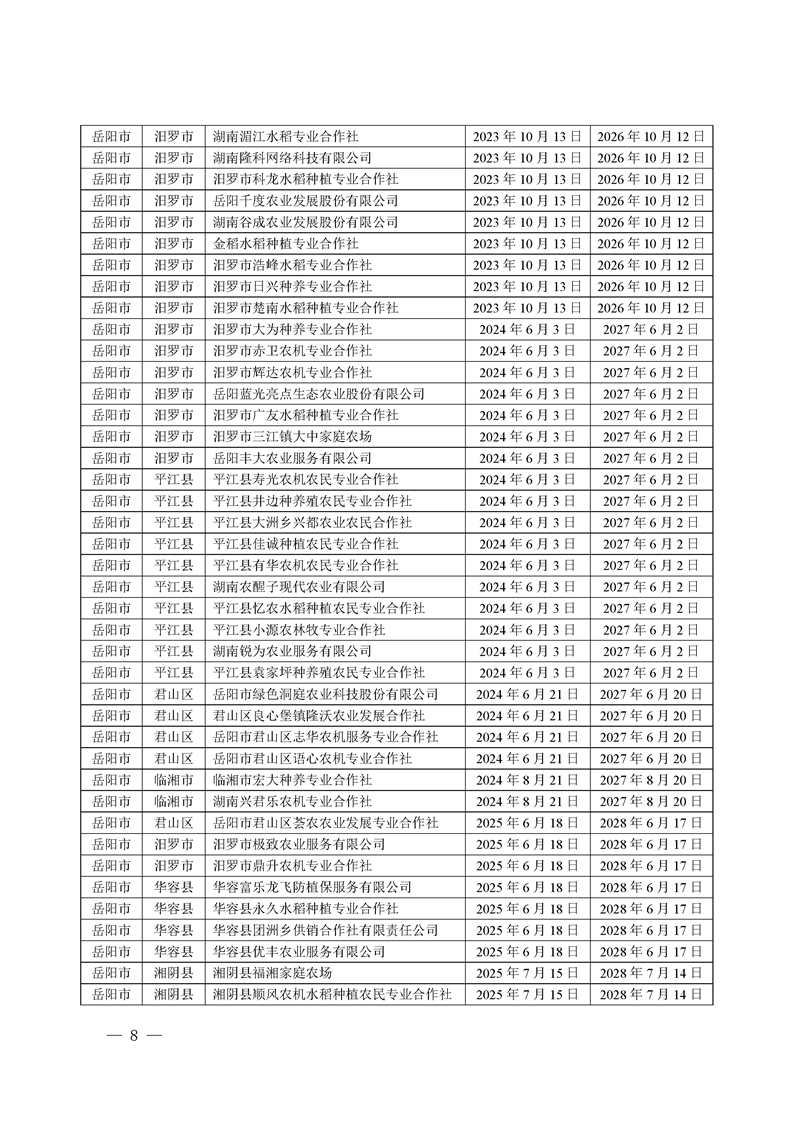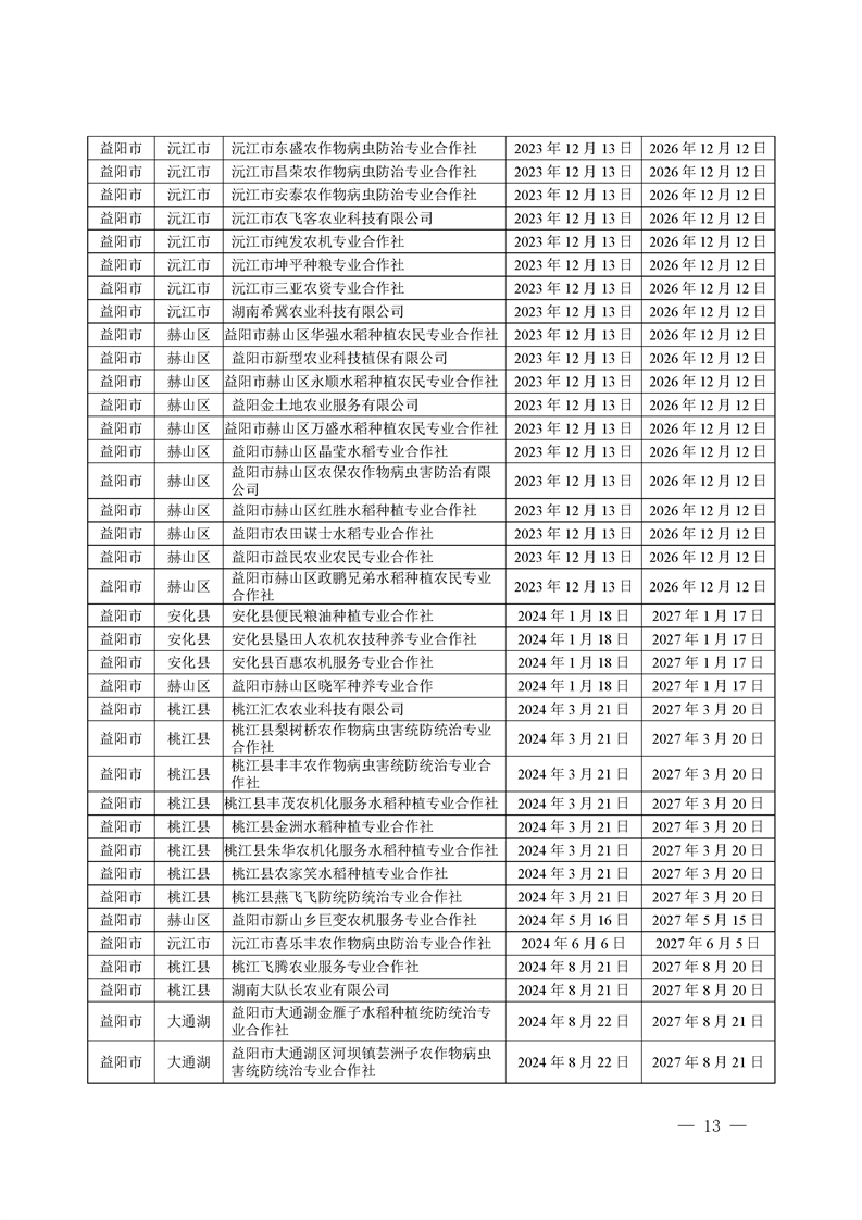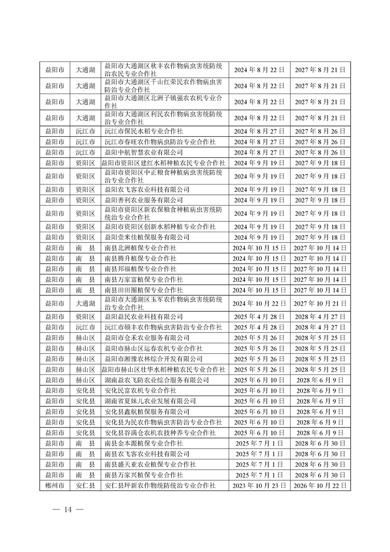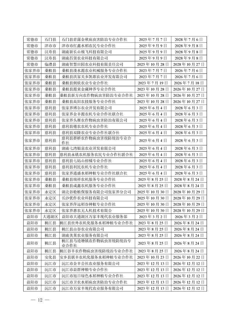 关于发布《湖南省农作物病虫害专业化统防统治服务组织标志使用授权书》授权服务组织名单的通知