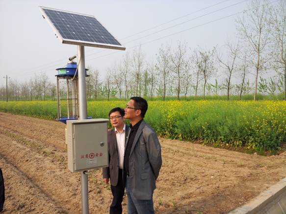 区长梁成立检查太阳能频振式杀虫灯安装进度