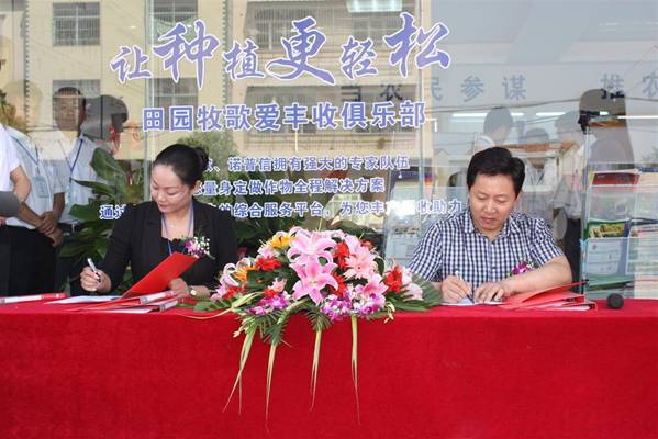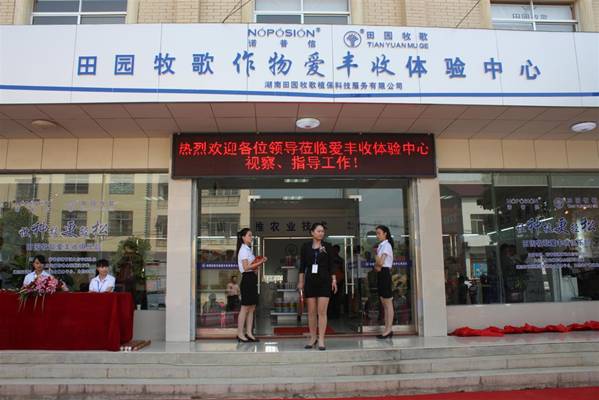 5月8日,岳阳市首家农作物技术服务体验中心——田园牧歌作物爱丰收体验中心正式挂牌营业。体验中心以“当农民参谋,推农业技术,做环保卫士”为宗旨,配备远程视频、小型直升机等设备,不定期举办农技讲座、技术交流、田间指导等活动,为农民及种植大户提供种植——病虫防治全程服务。开业现场与湖南插旗菜业服务有限公司签订蔬菜全程病虫防治和统一供肥合同2000亩,与许市镇金盆村签订全程水稻病虫防治合同1600亩。