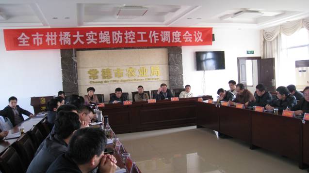 11月15日,常德市组织召开柑橘大实蝇防控工作调度会,全市进入防治柑橘大实蝇实战阶段。会议由市政府副秘书长郑志鹏主持,副市长朱晓平出席会议,市委农村工作部部长李百艳、市农业局局长黄云新、各有关县(区市)分管农业副县(区市)长、农村工作部部长、农业局局长、植保植检站负责人共计60余人参加了会议。