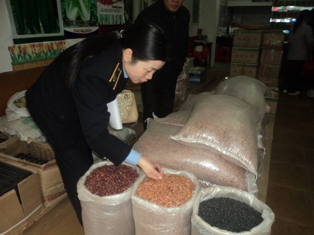 据统计,此次执法检查,共检查大中型超市3家,蔬菜批发门店 3家,蔬菜种子经营门店8家,共检查豆类产品约5000kg,其中生鲜豆类产品约1000 kg,干豆类约4000kg,目前我县暂未发现菜豆象疫情。