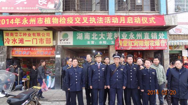 为深入贯彻落实好省农业厅有关文件精神,严格农业植物检疫监管,切实加强和规范永州市农业植物检疫执法,有效遏制农业有害生物的传播和蔓延,确保全市当前春耕备耕工作有续开展。2月20日上午,永州市在冷水滩区正式启动为期一个月的2014年农业植物检疫交叉执法检查活动,来自市植保植检站与11个县区植保植检站的15名专职检疫员参加。