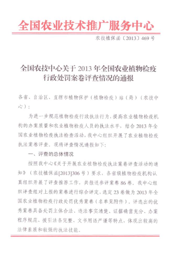 我省两份案卷获全国农业植物检疫行政处罚优秀案卷