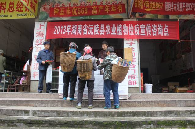 二是现场宣传咨询注重效果。各县市区在种子种苗繁育基地、批发市场,农产品批发市场等重点地区设立现场咨询、宣传点62个,发放《致全市种子生产、经营者和农民朋友的检疫公开信》、《黄瓜绿斑驳花叶病毒的危害与防控》、《植物检疫知识宣传资料》等有关植物检疫宣传资料24950余份,开展现场咨询84场次接受咨询8136人次 。各地在宣传咨询中还特别注重了宣传咨询工作的实际效果。新晃县、洪江市、靖州县在咨询点上悬挂《全国农业植物检疫性有害生物》彩色挂图,现场讲解在我市范围发生的农业植物检疫性有害生物,现场解答农户提出的问题,深受企业和农民朋友欢迎;会同县、洪江市、沅陵县植保植检站在宣传咨询中与本辖区内主要种子种苗生产经营单位、主要农产品生产流通单位签订植物检疫承诺书,增强相关单位和个人守法意识,主动自觉配合检疫机构做好产地检疫和调运检疫工作。