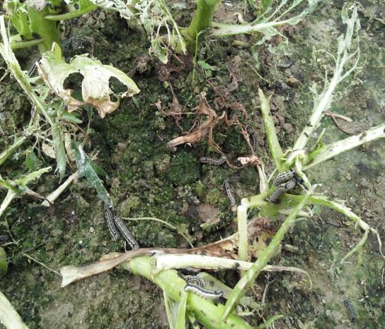 当前,通道县局部田块斜纹夜蛾发生严重,幼虫量大,其中临口镇咖啡豆种植基地在7月中下旬发现虫情后,向植保站反应情况,高级农艺师杨通智及时到田间做了调查并指导种植户抓住低龄期对症下药开展防治,取得了非常明显的防治效果,没有造成虫灾发生。县源田生蔬菜产业发展有限公司临口蔬菜基地在幼虫低龄期发现虫情,没有引起重视,不及时开展防治,造成当前高龄幼虫暴发、暴食成灾,160余亩蔬菜绝收。