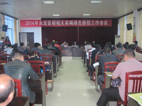 2014年5月13日,永定区召开柑桔大实蝇绿色防控工作会议,会议由区政府办副主任满星来主持,参加会议的有市植保植检站站长、区人大副主任、区植保检疫局、各乡镇分管农业领导、乡镇农技站站长等。