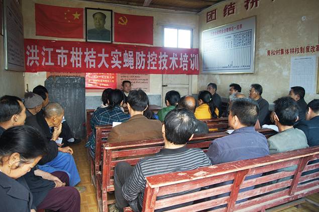 3月18日,洪江市组织柑桔大实蝇防控服务队来到岩垅乡青松村为该村32户柑桔生产户上培训课。培训班上,杨佩友详细讲解以果端特应用为主的柑桔大实蝇综合控防技术,现场气纷活跃,取得了预期的培训效果。