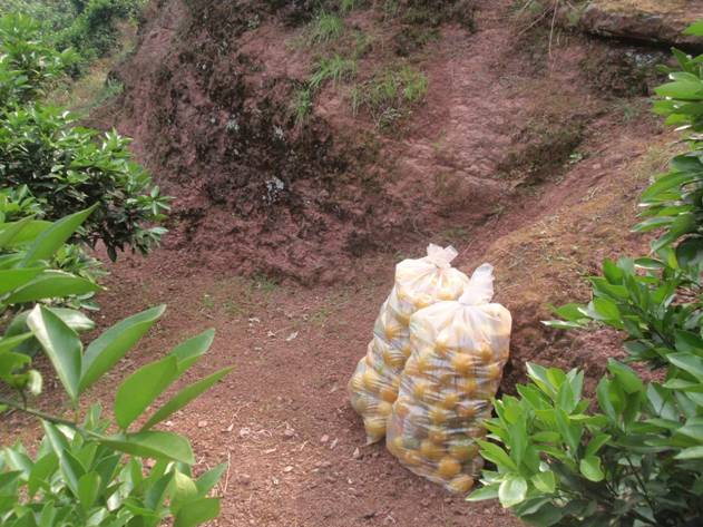根据落果进度,泸溪县自10月16日起全面启动柑桔大实蝇虫果摘拾及无害化处理工作,由县人民政府统一提供虫果处理袋和虫果处理药剂,要求桔农每2天捡拾一次。截止12月5日统计:全县共发放虫果处理袋30000个,虫果处理药剂敌百虫300件,处理柑桔大实蝇虫果260万斤。