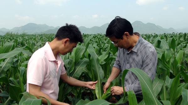 今年玉米病虫害依然惯性发生,不容乐观,据我县植保站5月中旬末在新圩江镇、水岭乡玉米高产创建区调查:玉米螟田块发生率为16%左右,为害株率2.0%~5.0%,蛀茎率0.5%~1.8%,每亩幼虫量100~800头,最高1200头(接近2级发生);玉米纹枯病田间始见(早于去年),发病株率小于1%。预计今年我县玉米螟中等发生,纹枯病中等发生。
