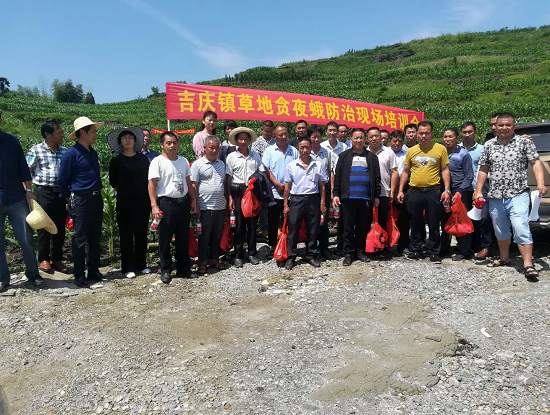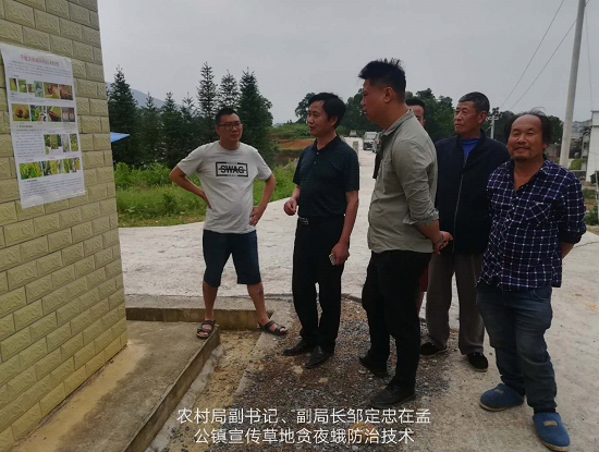 5月24日,在农业农村部和省农业农村厅召开草地贪夜蛾防控视频会议后,县委、县政府立即召开了全县乡镇(场、办)分管农业领导、农技站站长会议,就做好草地贪夜蛾防控工作做了全面的安排部署。5月27日,副县长周晋在孟公镇宝塔村主持召开全县草地贪夜蛾飞防统防统治现场会,到会人员160多人。5月31日下午,县长左志锋主持召开了全县乡镇主要领导参加的草地贪夜蛾防控升温加压会,对全县防控工作进行再动员、再部署。县农业农村局每天安排3台专车开展指导与宣传,制作了《关于加强草地贪夜蛾防治的紧急通知》音频,利用“村村响”全民动员,印发防治技术手册进村入户。