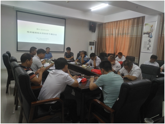 9月6日,桃江县农业农村局组织召开晚稻穗期病虫害防控专题会议,范尚华局长、彭建良副局长和全县15个乡镇的农技站长参加会议。