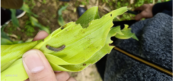 4月14日,永州道县植保植检站站长何斌带领全站人员在该县清塘镇芒头寨村一片面积约200亩的春季甜玉米上调查草地贪夜蛾发生情况时,发现了一种外形十分像草地贪夜蛾的幼虫正为害甜玉米心叶,经鉴定,该虫为粘虫。这片甜玉米正处于苗期(8叶期)且长势较好,粘虫发生面积约25亩,百株虫量2—3头,虫态2—4龄。