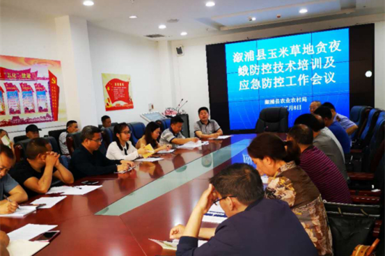 宋克洋宣读了《2020年溆浦县草地贪夜蛾防控工作方案》,并就草地贪夜蛾调查监测和应急防控工作进行安排部署:一是切实增强防控工作的责任感和紧迫感。各乡镇要切实提高政治站位,站在确保粮食生产安全、维护社会稳定的高度,抓好草地贪夜蛾调查监测与应急防控工作。二是加强调查监测,及时掌握发生动态。县植保植检站和各乡镇农业综合服务中心要开展区域联合监测,加点加密深入田间调查,及时掌握发生动态,严格虫情信息报送。三是加强宣传培训,确保技术指导到位。全县要分层分级对农业技术人员、专业化防治组织、种植大户和农户进行培训,要利用电视、广播、手机短信、微信公众号、技术挂图等方式,加大宣传培训力度,引导农户正确认识草地贪夜蛾的危害,掌握识别和防控方法,形成群查群防群治的联防联控合力;四是开展综合防控,确保防治效果。按照“治早治小、全力扑杀”防控原则,以化学防控为主要手段,结合农业、物理、生物等防治技术,重点聚焦三龄前幼虫防治,全力压低虫口基数。
