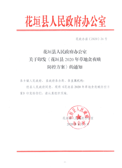 4月2日花垣县人民政府成立了草地贪夜蛾防控工作领导小组,分管农业副县长田宗武为主组长,12个乡镇分管领导、县植保局等为成员,并发布了“花垣县人民政府办公室关于印发《花垣县2020年草地贪夜蛾防控方案》的通知”。