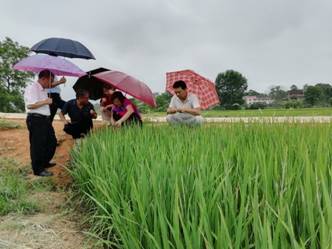 6月23日,娄底市农业农村局副局长舒海燕、农技推广中心主任凌志胜等一行4人来双峰县调研水稻病虫防治工作。