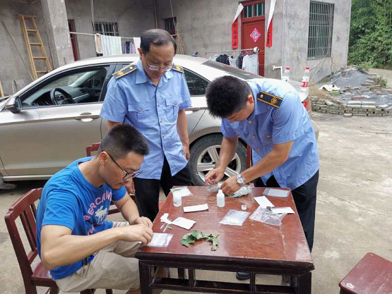 7月1日-3日,邵阳市植保站植物检疫人员到新宁、武冈对湖南雪峰种业有限公司的西瓜和水瓜制种基地开展产地检疫。目前瓜果长势较好,即将出产。通过现场勘察,田间未发现西瓜细菌性果斑病、黄瓜绿斑驳花叶病毒病等检疫性对象。检疫人员还抽取了多个叶片样本进行试剂盒快速检测,所有检测结果均为阴性。