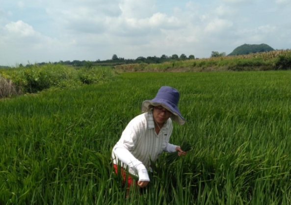 7月29日,江永县植保植检站高级农艺师刘亚娟早早就来到潇浦镇回岗村水稻病虫害系统监测点。只见她光起脚板下到监测稻田内,这蔸扒扒,哪蔸看看,观察中稻稻瘟病、纹枯病、二化螟、稻纵卷叶螟等病虫害发生情况,随后匆忙赶往高空诱虫测报点,倒出诱捕到的昆虫,戴上口罩,拿起镊子和放大镜仔细的统计各类昆虫的数据信息。她要赶在中稻分蘖期结束前,及时发布1期病虫害情报,以更好指导农户做好中稻田间管理。