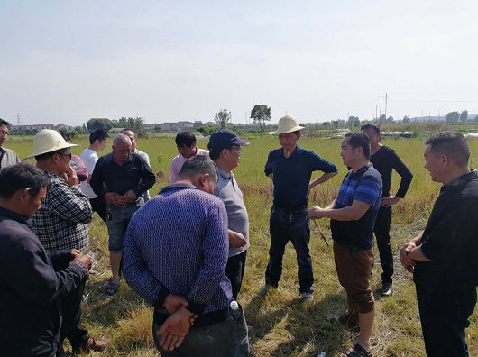 通过每周2-3次的病虫害调查,植保专家将多年的防控工作经验和科学的预测预报模型相结合,农发中心针对水稻不同时期的病虫害发生特点分别发布了《病虫情报》6期,百分百入村进组,贴公告、发微信,全面指导农户进行大面积防治。