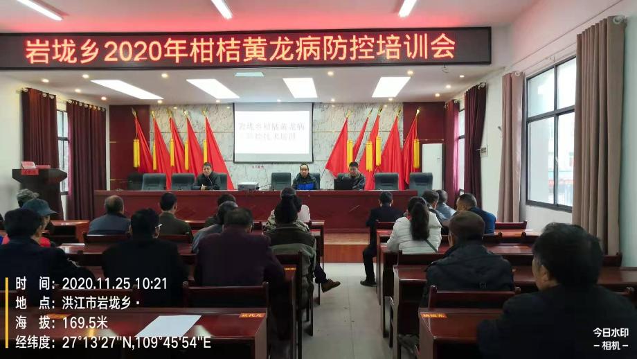 2020年11月,洪江市农业农村局组织植保技术人员对全市柑橘主产乡镇的村组干部、柑橘种植大户开展柑橘黄龙病防控技术培训,目前已开展培训5期,培训人员400余人次。