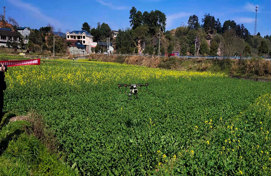 2月23日,中方县植保植检站组织社会化服务企业,调集多台植保无人机对铜鼎、铜湾、袁家等7个乡镇稻油水旱轮作万亩示范区油菜病虫害统一开展病虫防治。在机手的操控下,当天完成了800余亩病虫防治及增施硼肥飞防作业。
