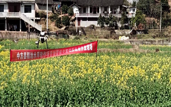 2020年至2021年,中方县实施稻油水旱轮作项目,试点面积2.2万亩。通过政府采购,在示范区统一提供种子、硼肥,推广全程机械化翻耕播种,统一病虫防治,统一机收,全程跟踪技术服务,全面推动农业产业高质量发展。为确保项目区油菜不出现因病虫危害造成重大损失,县农业农村局植保植检站一方面加强病虫调查监测,及时预报预警,适时开展大面积防治,同时多方筹措资金60余万元,对集中连片项目示范区采取购买社会化服务,开展植保无人机统一飞防作业,有效提高防治效果和防治效率,确保项目区农民增产增收。