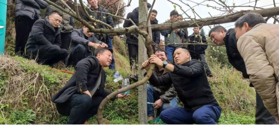 去冬今春以来,溆浦县北斗溪镇来凤村部分村民种植了近5年的猕猴桃出现了一种不明病情,一些主枝和侧蔓上流出了红色黏液,枝条不能正常萌芽,出现枯死现象。猕猴桃是该村的重点扶贫产业,接到反映后,市、县农业农村部门领导高度重视,立即安排部署。3月12日,怀化市农业综合服务中心植保植检站站长、高级农艺师张龙杰和溆浦县农业技术推广中心植保室主任、农艺师罗正春、高级农艺师贺德全三位专家来到该村共同把脉会诊。