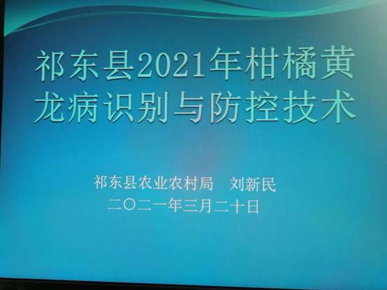 提高基层农技人员、合作社和种植大户的科技水平是促进农业产业高效发展,确保全县“虫口夺粮”保丰收行动有序推进的基础工程。3月19-20日,祁东县农业农村局在维也纳大酒店举办祁东县2021年基层农技人员能力培训会。会上,祁东县植保植检中心对2021年祁东县植保植检重点工作进行了讲解,并对柑橘黄龙病识别与防治技术作了专题讲座,参训人员包括各乡镇(街道)分管农业领导、农业综合服务中心主任、农技农机组长、种植大户和合作组织约200人 。