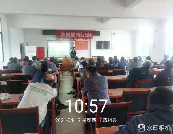 4月15日上午,靖州县植保植检站与靖州民丰农资农作物病虫害专业化防治合作总社联合举办了靖州葡萄种植技术培训会。靖州县及周边县市葡萄种植大户80余人参加了培训。培训会邀请了国光股份有限公司葡萄研究所王硕专家就葡萄农事管理、病虫害防治、肥水管理、拉花膨果等技术进行了详细讲解。一上午的培训,学员们均表示收获满满,纷纷表示要按专家的要求搞好葡萄的绿色防控,争取葡萄的优质高产。
