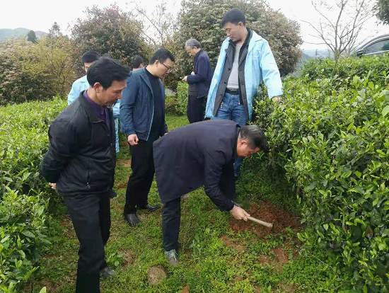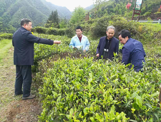 调研组一行深入新化紫金茶叶有限公司基地调查了当前茶叶病虫害发生情况,并与县植保部门及公司有关负责人、技术人员就如何进一步抓好茶叶病虫害绿色防控、推动植保工作转型发展等进行了座谈交流。