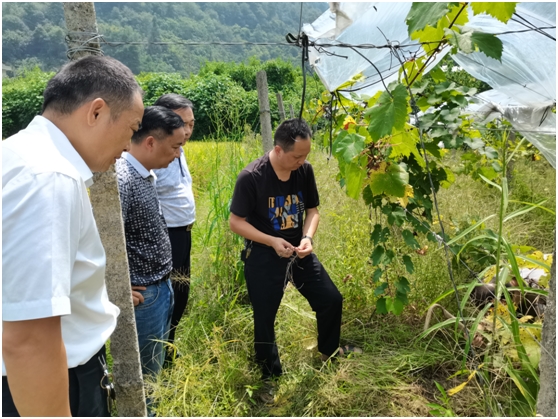 怀化市农业综合服务中心王进军主任(左一)检查新晃县葡萄根瘤蚜疫点