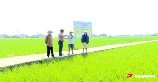 在新市镇大同村种田大户杨桂的水稻种植基地里,植保站的技术人员正在给他指导当前中晚稻的病虫害防治,并提出了具体的防治措施。