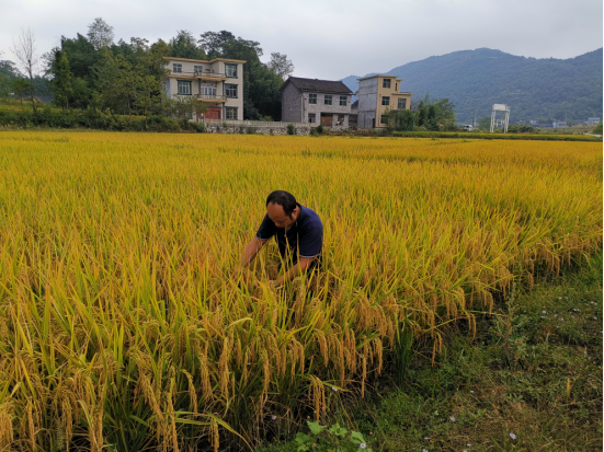 2021年9月16日,吉卫镇水稻进入收割期,稻水象甲得到有效控制,水稻丰收了!