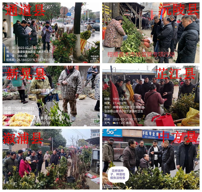 2月下旬,为切实阻截柑橘黄龙病疫情人为传播,打击非法调运柑橘苗木等行为,保护怀化市柑橘产业安全,怀化市农业农村局组织13个县市区植保植检、农业行政执法、种业管理等机构人员100余人,在各辖区农贸市场集中开展柑橘苗木监管专项检查行动,各县市区共检查农贸市场76个,未没有发现行政区域外的柑橘苗木销售。