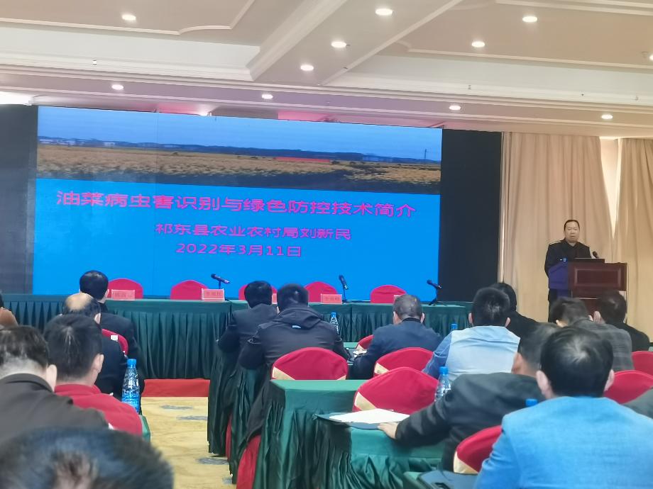 2022年3月11日,祁东县农业农村局在维也纳国际大酒店召开祁东县2022年油菜病虫害绿色防控培训暨专业化统防统治无人机飞防现场观摩会。会议邀请了省植保植检站防治科和衡阳市农业技术中心植保科部分同志出席,培训人员包括25个乡镇(街道、处)农技中心负责人、油菜种植大户和县植保植检中心全体人员共70人。