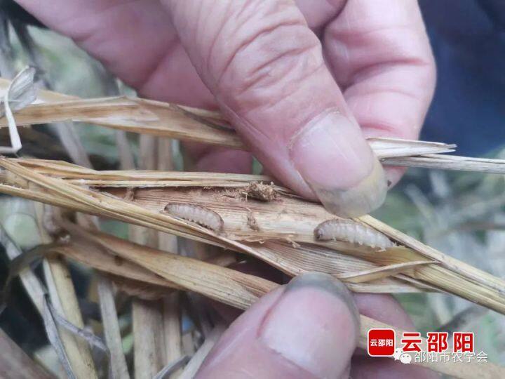 邵阳市农学会科技志愿服务队队员、邵阳县农业农村发展服务中心农业技术推广研究员袁秋生、高级农艺师苏小平、蒋祥云等专家在稻桩剥查发现,邵阳县今年二化螟冬后基数较历年大,具备大发生虫源条件,所剥查区域单株稻桩最高的有虫7条,最高丘亩残留虫口近10万条,平均亩残留虫口量在1万条以上,残留虫口基数特别大。