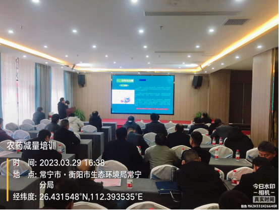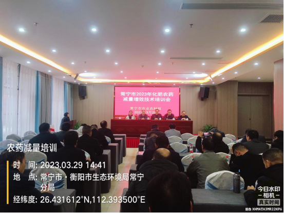 3月29日,常宁市举办2023年化肥农药减量增效暨农作物病虫害绿色防控技术培训班。省植保植检站药械科负责人、衡阳市植保植检科及土壤肥料科负责人、常宁市农业农村局相关领导同志出席培训会。