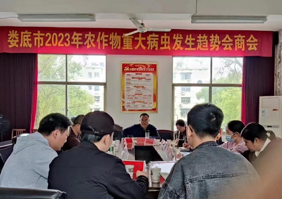 为做好全市农作物重大病虫害发生趋势预测,确保粮食增产丰收,4月3日,娄底市农业农村局召开了2023年度农作物重大病虫害发生趋势会商会。各县市区植保植检站负责人、专业技术测报人员、市气象专家、市农技推广中心主任、植保站全体人员参加会议。