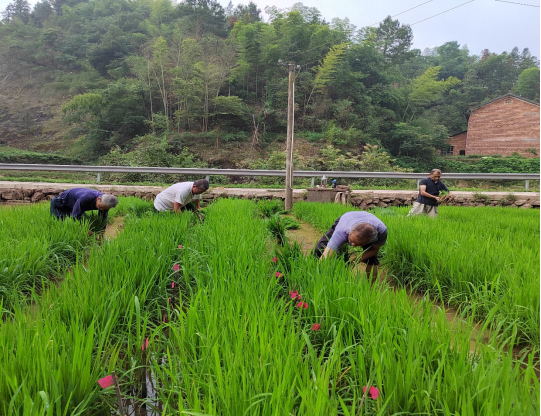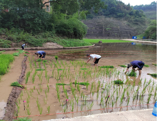 “一人负责一行,扯完秧苗后,切记秧苗和标签牌放在一起,不要混淆”。7月1日,早上6点,县农业农村局植保植检站技术人员早早来到岭坡乡双河口村试验田边,从品种移栽顺序、正确插扦标签牌、移栽株行距等关键技术点对参加试验移栽的工人进行现场指导。