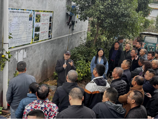 中方县翔燕植保服务有限公司负责人汇报了该公司全年为杨仁早及周边柑橘大户开展柑橘病虫害飞防作业与柑橘黄化治理的具体做法。随后,与会人员实地观摩了杨仁早的柑橘园,仔细查看柑橘长势与果实品相,柑橘果实表面光滑无病虫害,对杨仁早柑橘园的黄金贡柚赞叹不已。