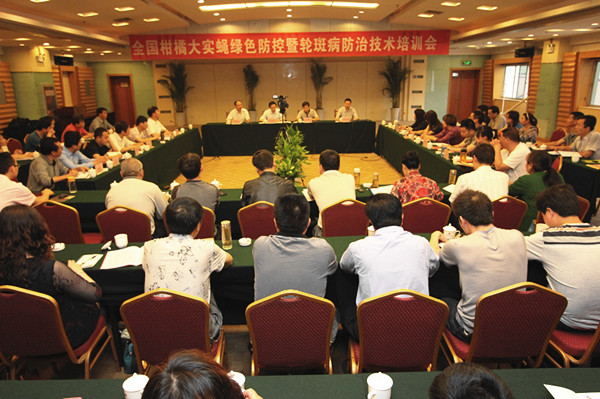 培训班上就柑橘轮班病和柑橘褐斑病两种新发病害进行了培训和研讨。柑橘轮斑病于2009年在陕西省汉中市平坝橘园零星发生,随后面积迅速扩大,经浙江大学李红叶教授鉴定为柑橘轮斑病,属国内首次发现,世界上也尚未有相关报道。2012年3月,种植业管理司会同全国农技中心、中国农科院柑橘所组成联合调研组,赴陕西省城固县进行实地调查,并针对柑橘轮斑病发生和防治情况,提出了防止病害扩散蔓延的建议;柑橘褐斑病于 2009年在广西首次发现,相继在云南、重庆、湖南、浙江等地发生为害。此次培训目的主要是加强对这两种病害的识别能力和关注程度,以防止病害的发生和蔓延。