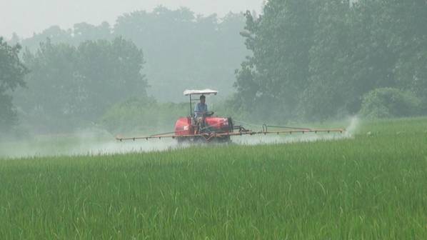 上午9点30分施药正式开始。单旋翼和多旋翼无人植保机、自走式喷杆喷雾机、担架式高效喷雾机等10种机型分成两组先后进行施药。每种参试机械都配备1名工作人员负责施药跟踪和数据记录。11点30分所有施药机械按照试验方案顺利完成了田间作业。此次施药由省植保植检站药械科全面调度,常德市和鼎城区植保植检站将安排技术人员对各种机械的施药效果进行田间调查,并于 7月中旬对试验地早稻进行实收测产,根据结果对参试的10种机型的施药效果与作业效率进行综合分析和全面评估。