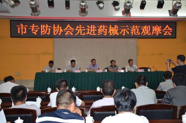 常德市农业局组织各区县市农业(林)局和西湖、西洞庭管理区农经局分管副局长、植保植检站站长,常德市专业化统防统治协会组织会员单位代表共80余人观摩了此次先进药械施药示范。6月12日下午,市专业化统防统治协会召开了会员大会,欧高财站长到会并作指导性讲话。
