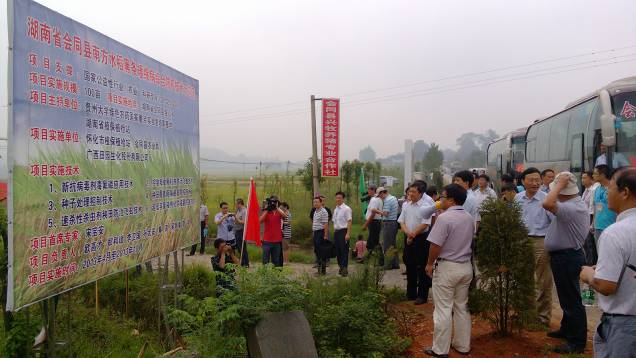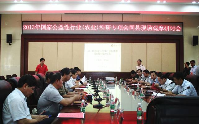 9月1日~2日,由贵州大学和湖南省植保植检站主办,怀化市农业局、会同县人民政府承办的国家公益性行业(农业)科研专项“农作物主要病虫害新药剂、新剂型研究与应用技术集成”2013年现场观摩研讨会议在怀化市会同县召开,来自农业部全国农技中心、中科院、中国农科院、中国农业大学、上海交通大学、南京农业大学、贵州大学、西北农林科技大学、江苏省农科院、湖南农业大学、湖南省农科院等单位的近40名专家学者参加了会议。会议由湖南省植保植检站副站长郭海明研究员主持,湖南省农业厅党组成员、总农艺师刘年喜、怀化市人民政府副市长王行水和会同县委主要领导出席会议并讲话。