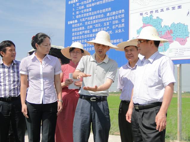 7月18-19日,农业部种植业管理司叶贞琴司长、植保植检处李建伟处长、粮油处刘亚萍处长一行来我省检查指导植保植检工作,省农业厅李志纯副厅长、省站欧高财站长、厅粮油处许靖波处长全程陪同。督查组一行先后到益阳市赫山区龙光桥镇、八字哨镇,岳阳县筻口镇、长湖镇,岳阳市田园牧歌公司总部进行了实地察看,并对我省专业化统防统治、绿色防控和当前病虫发生情况进行了详细了解。叶司长一行对我省的植保植检工作给予了充分肯定,并指出:湖南将专业化统防统治与绿色防控工作融合推进,既很好地发挥了专业化统防统治组织的平台作用,又有利于更有效地推进绿色防控工作,非常具有生命力。农业部将择机在湖南省举办两项工作融合推进现场会,向全国推广我省的典型经验。