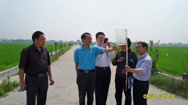 欧站长在回龙铺镇项目核心示范区察看3550亩绿色防控设施和二化螟诱捕效果