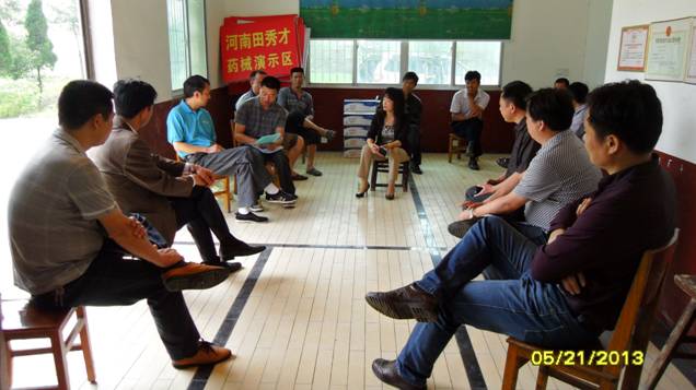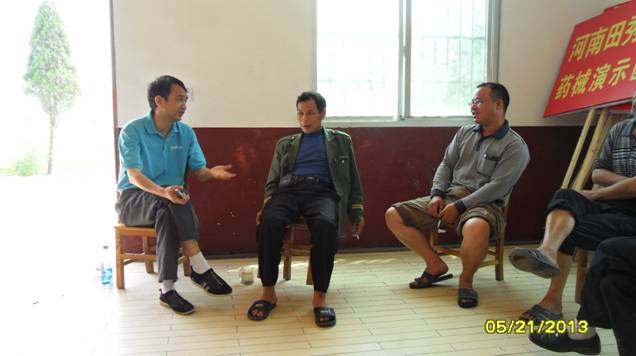 欧站长在天鹅村级服务站与专业化统防统治承包机手座谈