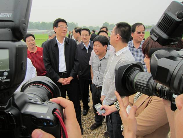 在望城区金成生态种植基地,徐守盛一行听取望城区农业部门负责人介绍了植保无人机的性能,观看植保无人机农药喷洒作业演示,并详细询问了双红公司负责人易红伟植保无人机价格、作业效率及与人工防治相比的优势。最后,徐守盛强调:无论是种植还是养殖,都要突出生态品牌,讲究诚信经营,注重依托科技支撑。