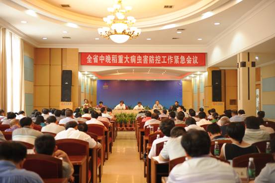 8月10日,全省中晚稻重大病虫害防控工作紧急会议在长沙召开。会议的主要目的是总结交流早中稻重大病虫防控工作经验,分析当前中晚稻重大病虫害发生形势,进一步研究部署中晚稻病虫害防控工作。邵阳市、醴陵市、沅江市等3个市县在会上作了交流发言。省农业厅粮油处许靖波处长、省农药检定所吴志华副调研员应邀出席了会议。省植保植检站欧高财站长结合我省当前中晚稻病虫发生形势,对下阶段的防控工作做了安排部署。省农业厅副厅长李志纯出席会议并作了重要讲话。